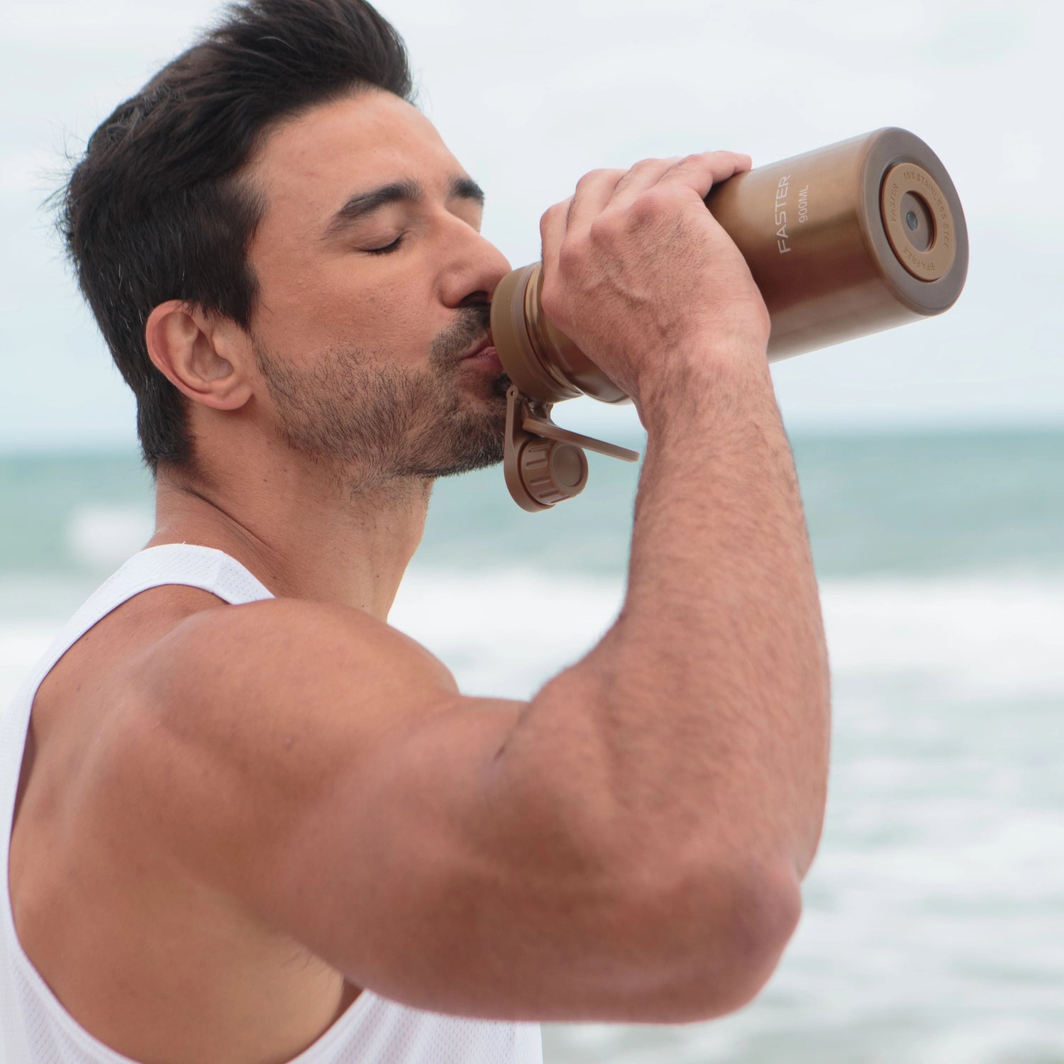 Antes de sair de casa pela manhã, encha sua Faster 1200ml com água fria ou sua bebida preferida e monitore sua ingestão de água para saber se você bebeu a quantidade ideal ao longo do dia.