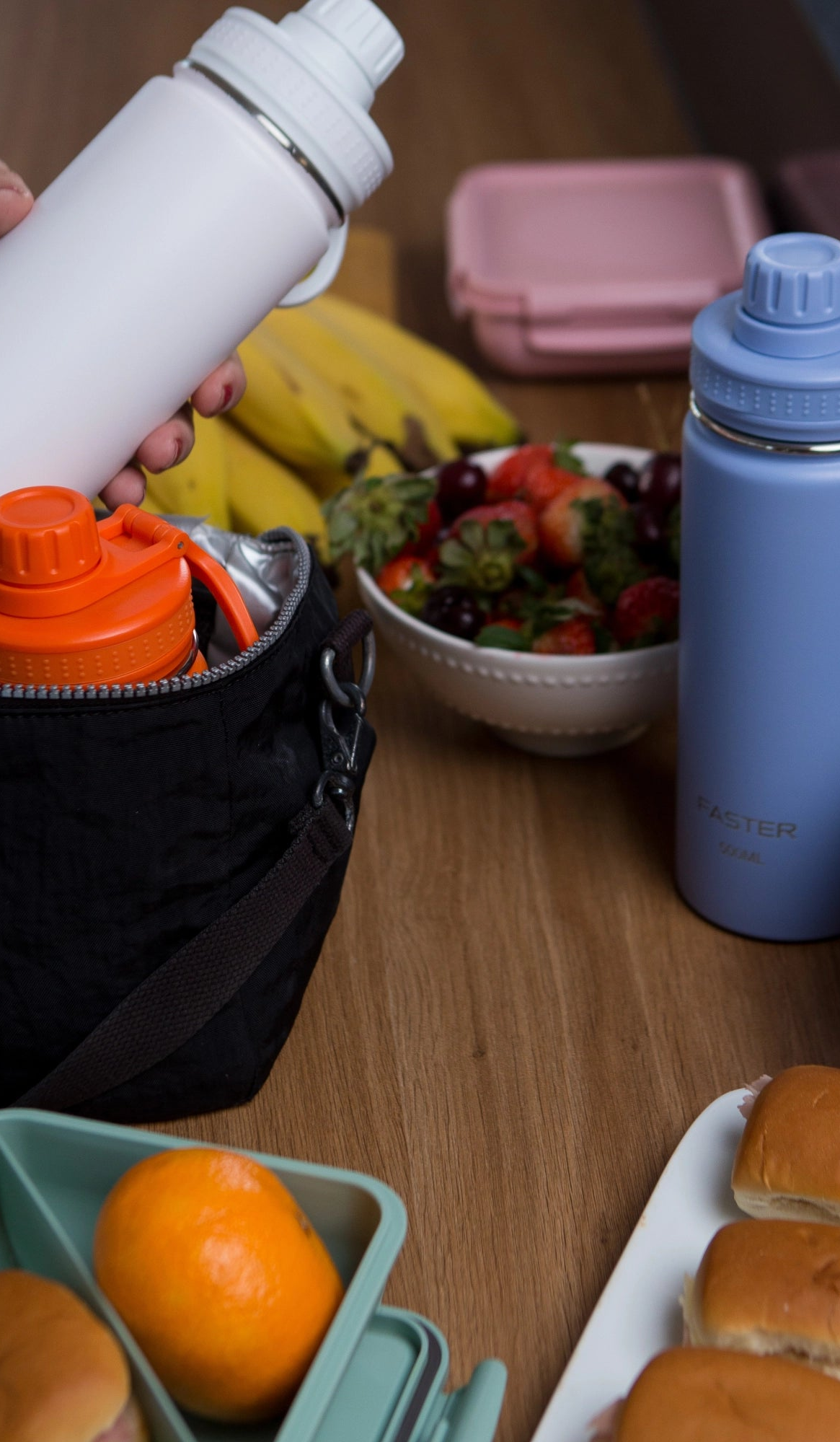 Ao acordar, encha sua Faster 500ml com a sua bebida favorita e mantenha-a por perto enquanto se prepara para o dia. Beber água logo pela manhã ajuda a reidratar o corpo após uma noite de sono, enquanto beber café logo pela manhã contribui para energizar seu corpo para as atividades do dia.