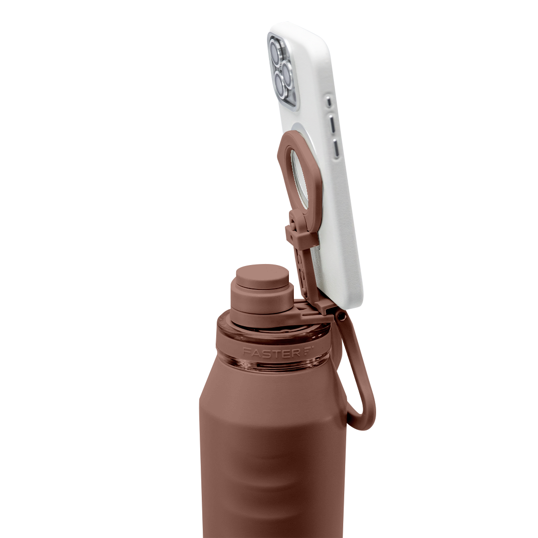 Feito sob medida para a Garrafa Faster Oasis, ele garante firmeza total, evitando quedas e mantendo o celular seguro o tempo todo.